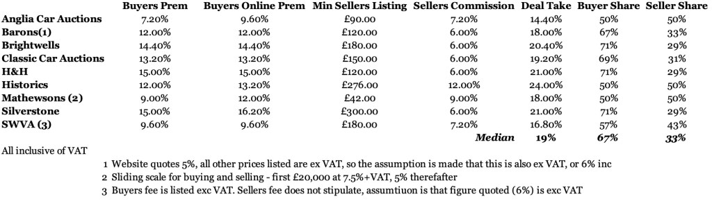 The sellers listing fees are relevant but difficult to compare on a like-for-like basis as different levels of service are included with each one (valeting or photography for example) so I’ll park those to one side for now.